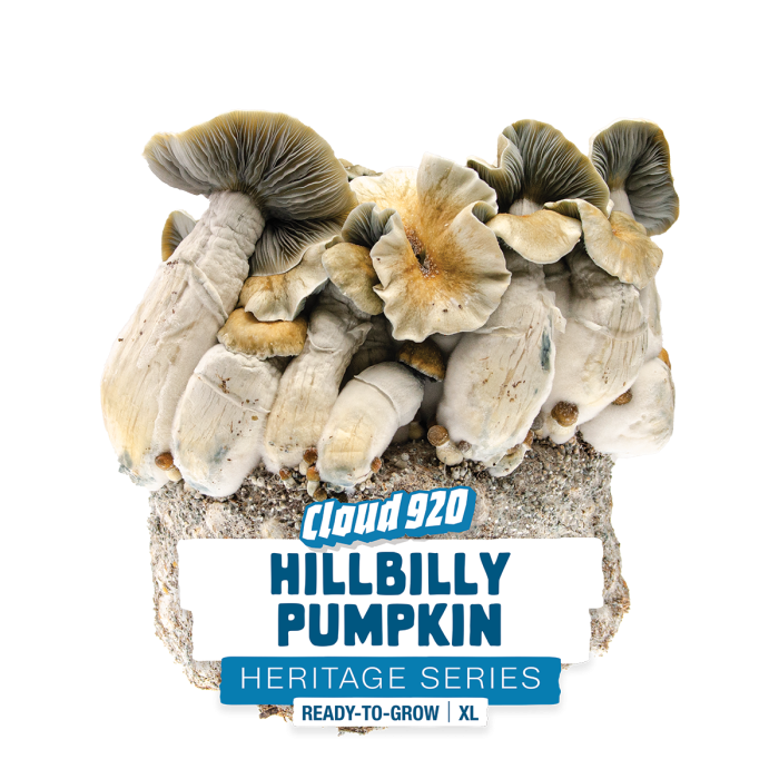 Hillbilly Pumpkin brings rustic charm and remarkable visual character to your cultivation. Isolated from wild specimens in Arkansas in the late 1990s, this strain produces mushrooms that live up to their distinctive name. The canopy features thick, robust white stems supporting large, warm orange-brown pumpkin-like caps. Individual fruiting bodies often exceed impressive sizes, creating visually unmistakable harvests. The thick-stemmed architecture makes Hillbilly Pumpkin both visually unique and structurally resilient.